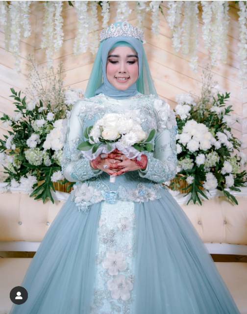 Baju gaun pengantin warna hijau premium wedding dress gown muslim mekar hijab.